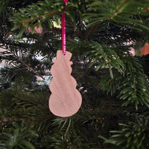 Kersthanger “sneeuwpop” van eikenhout  in één oogopslag: